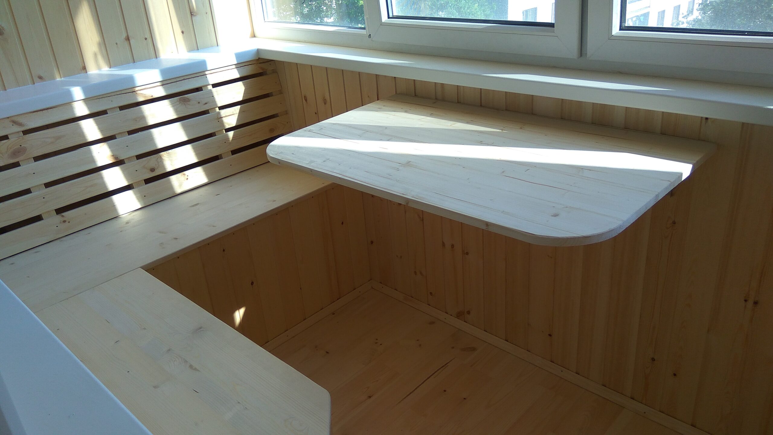 отделка балкона деревом